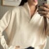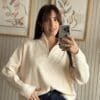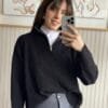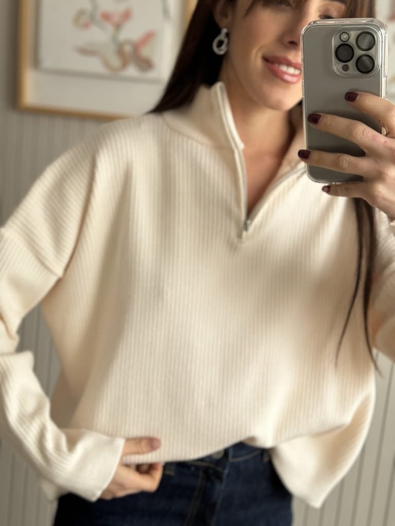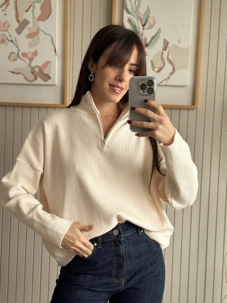 Sweater simil bremer con corte crop y medio cierre.
