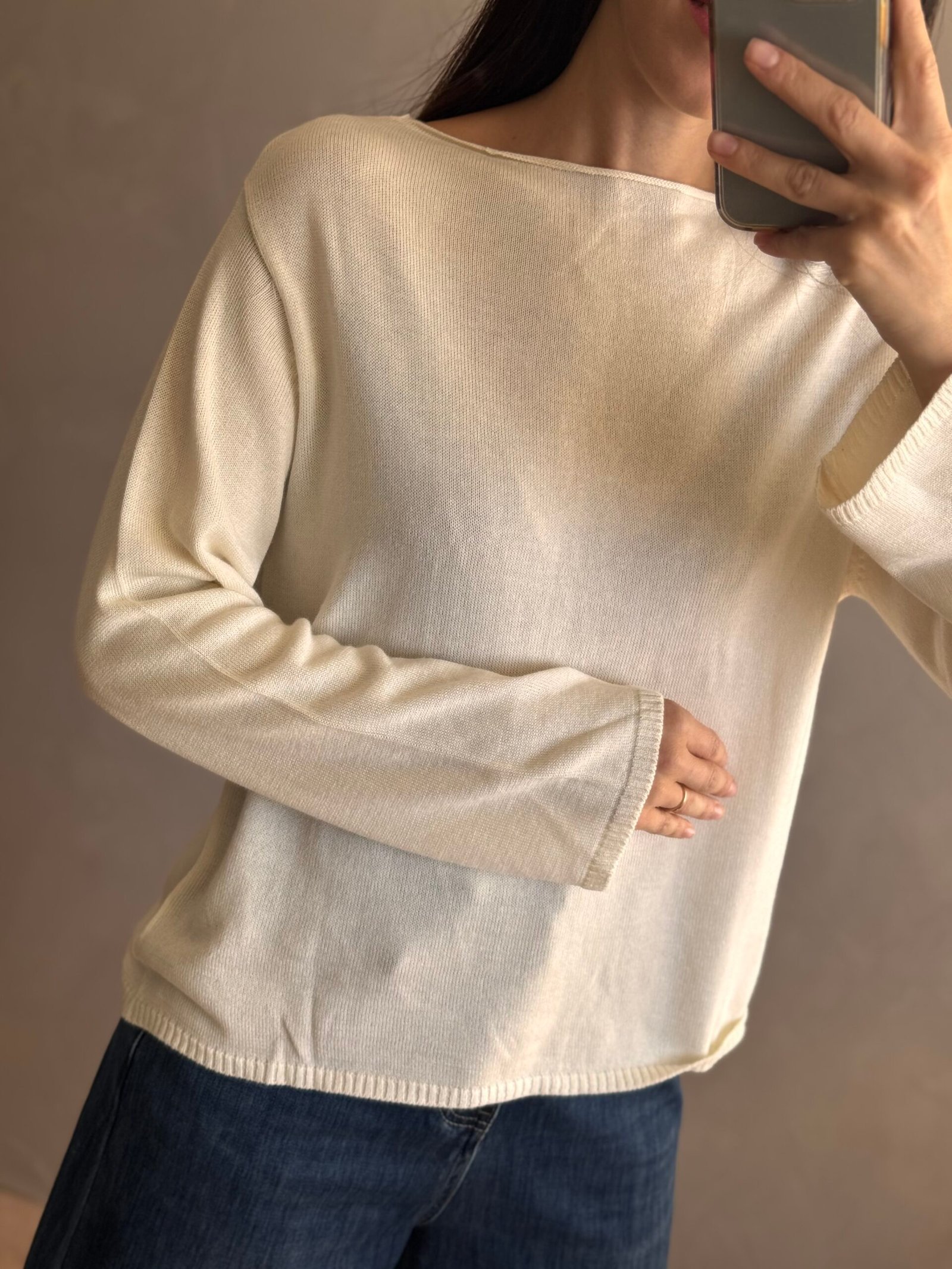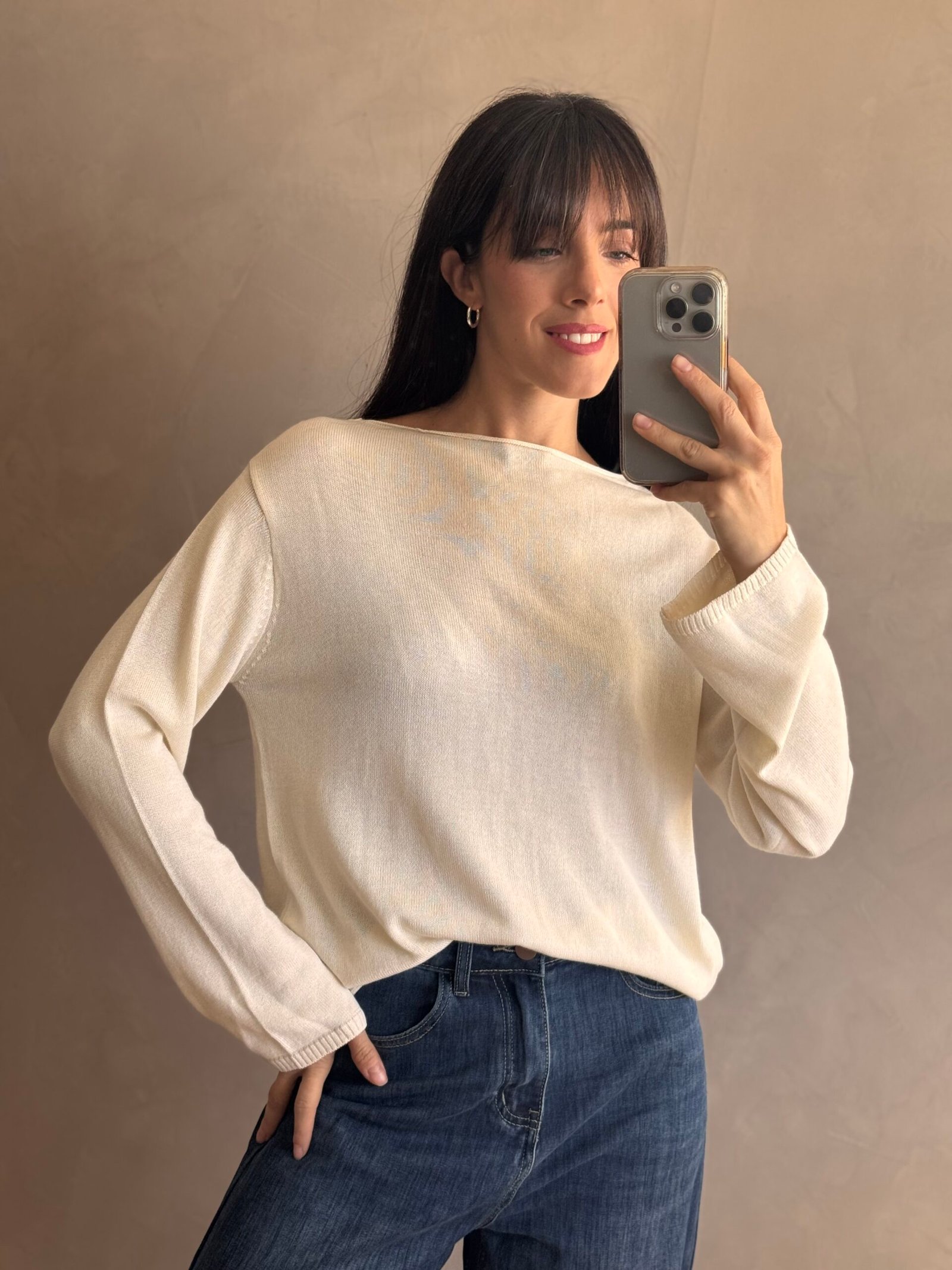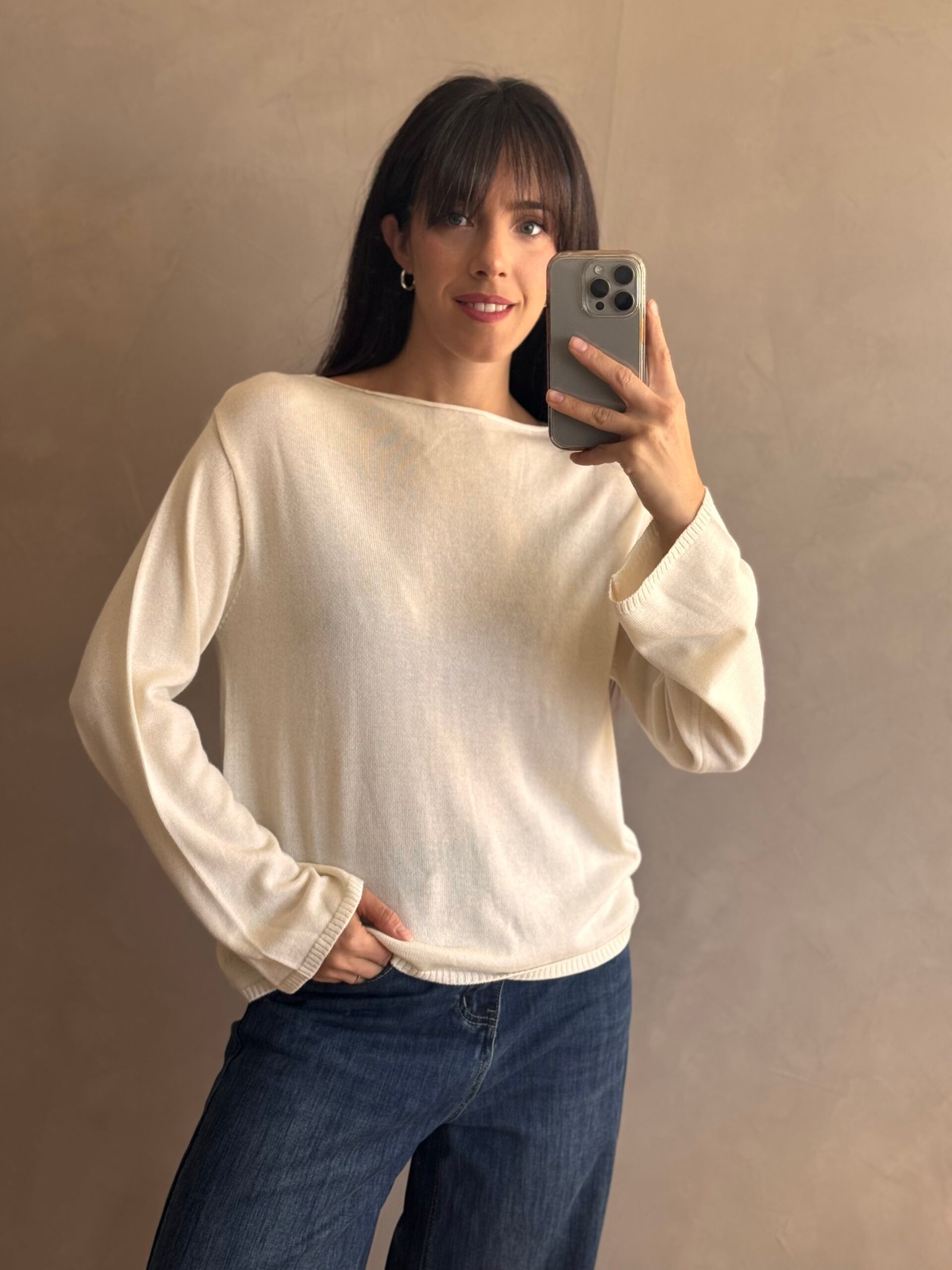 Sweater básico de cuello bote, caida recta y manga ancha