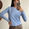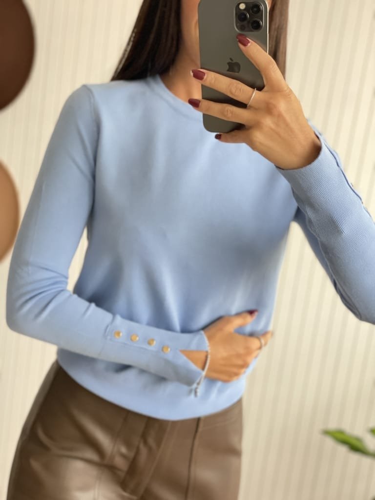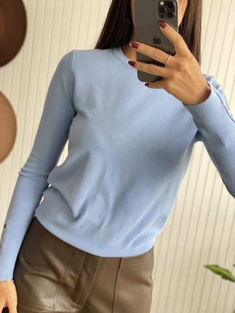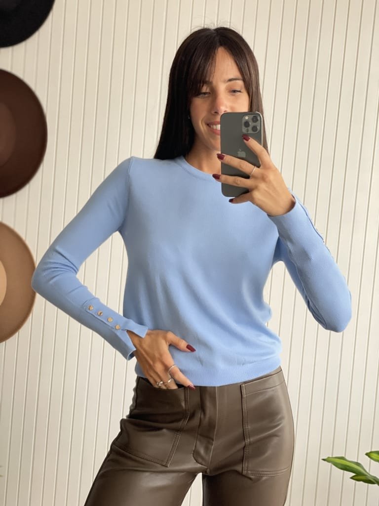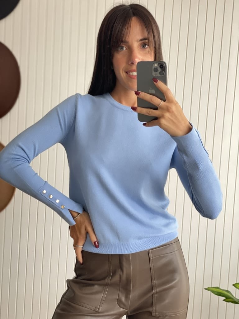 Sweater básico de bremer con cuello redondo y detalle de botones en las mangas.