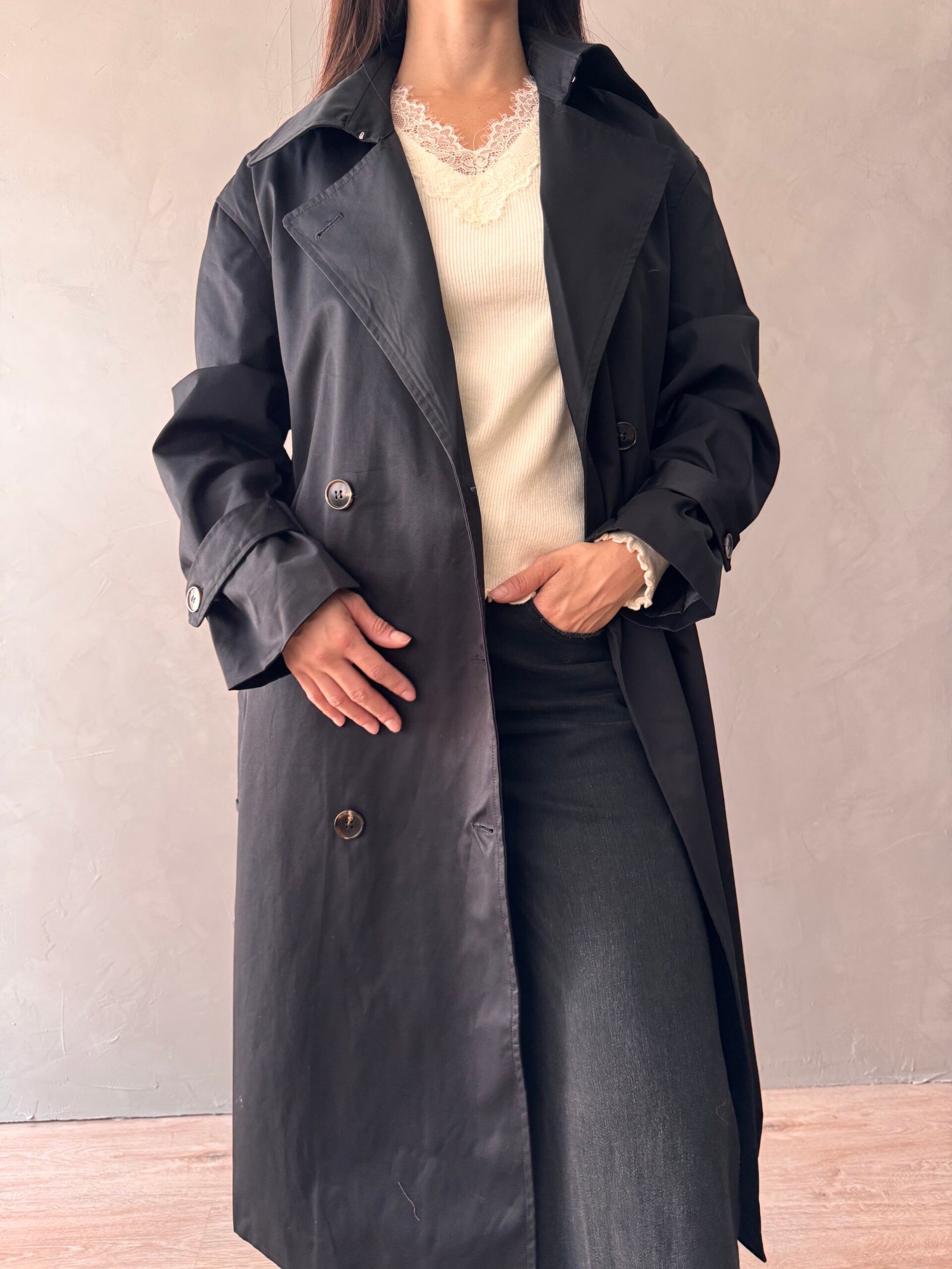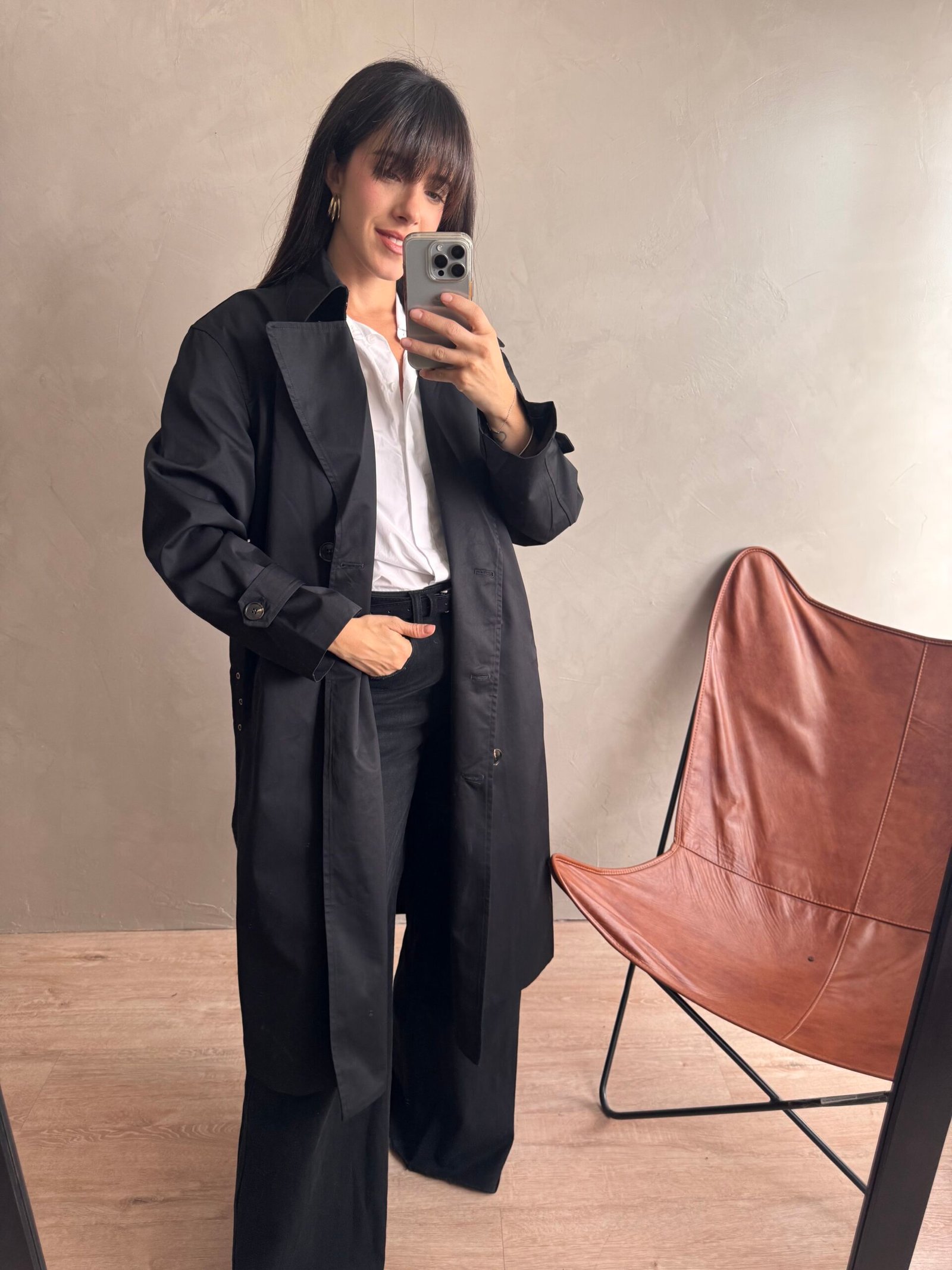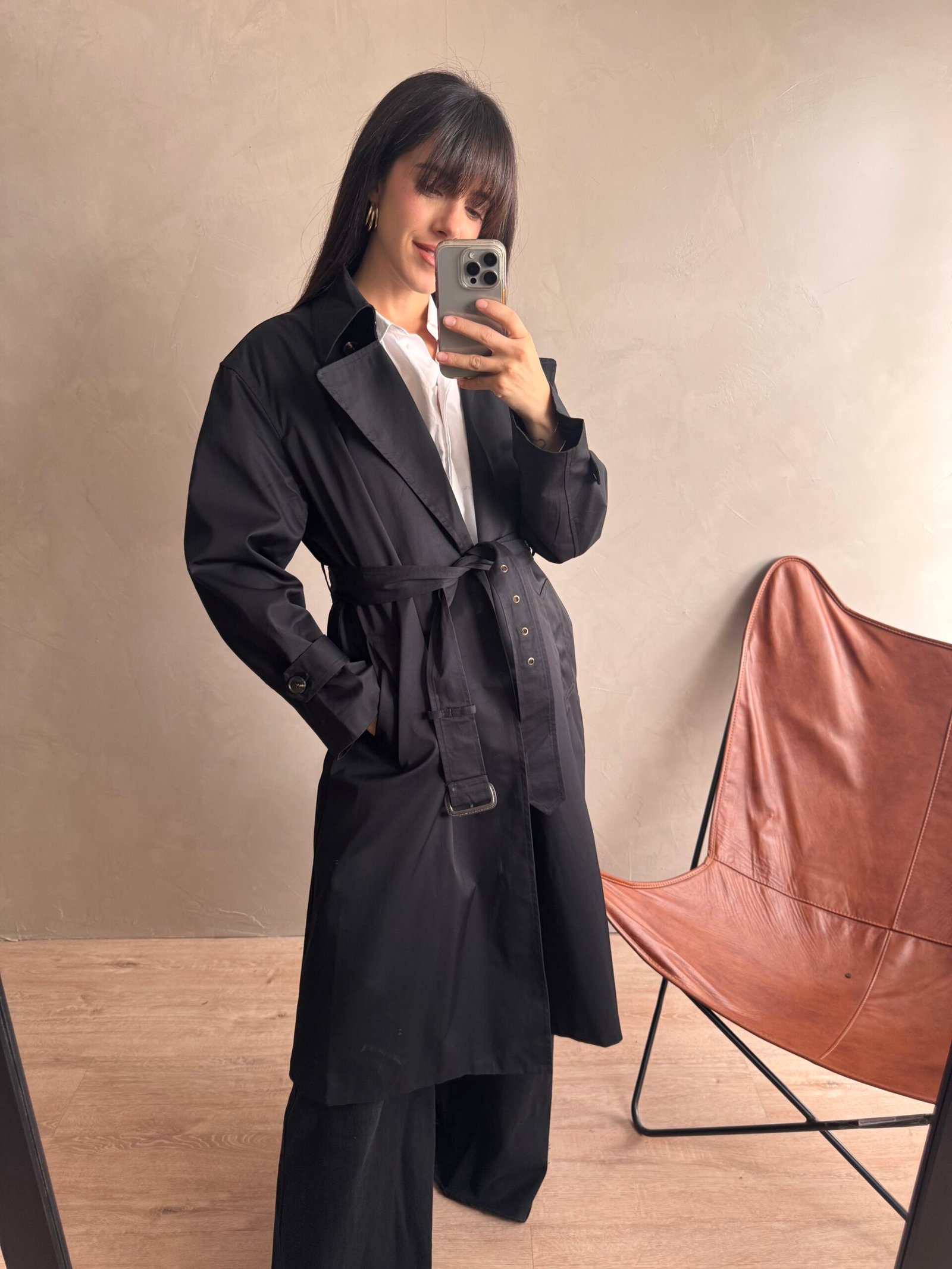Trench impermeable de cuello solapa y manga larga acabada con trabillas y botones. Bolsillos delanteros de vivo. Bajo con abertura en espalda. Cierre frontales con boton y cinturón. Forro interior a tono. Producto importado